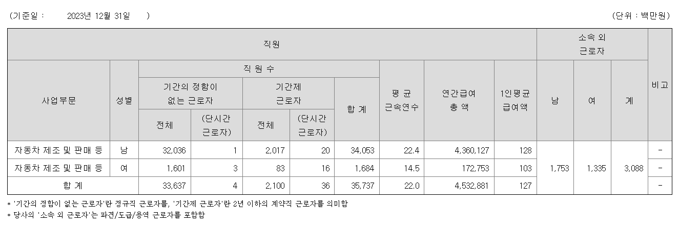 기아자동차 직원들의 평균연봉은 1억2700만원이다. 어지간한 금융사와 비슷하거나 더 높은 수준이다. 남자직원은 1억2800만원, 여자직원은 1억300만원이다.