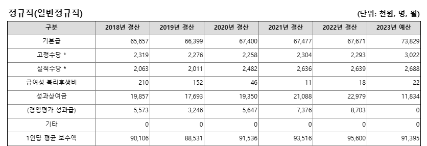 한국전력은 대표적인 공기업입니다. 연봉과 복지혜택이 좋은 것으로 알려져 있습니다. 1인당 평균 보수는 2023년 기준 9100만 원에 달합니다. 남성 9400만 원 여성 7100만 원입니다. 남성이 57%, 여성이 42% 차지하고 있습니다. 아마도 성비와 근속연수 차이로 인한 불균형으로 보입니다. 근속연수는 남성이 238개월, 여성이 169개월입니다.