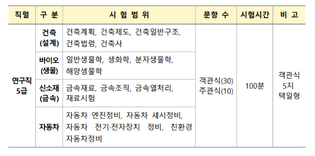 연구직 5급, 4개 분야 16일까지 원서접수