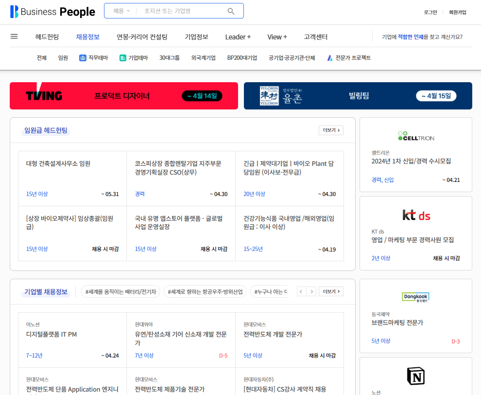 어느정도 경력이 있다면 비즈피플을 사용하는 것이 좋습니다. 헤드헌터 활동이 활발해 이력서를 올려놓으면 취업 매칭을 위해 헤드헌터가 연락하는 경우가 잣기 때문입니다. 헤드헌터가 연락온다고 해서 취업 성공에 직결되는 것은 아닙니다. 다만, 능력 있는 헤드헌터를 만나게 되면 면접 전에 회사 관련 정보를 잘 입수할 수도 있습니다.