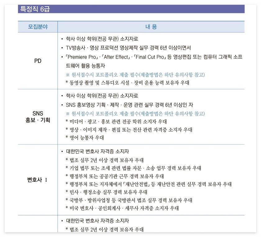 특정직 6급은 1978년 1월 1일부터 2004년 12월 31일까지 출신 대한민국 국민이 지원자격 요건입니다.