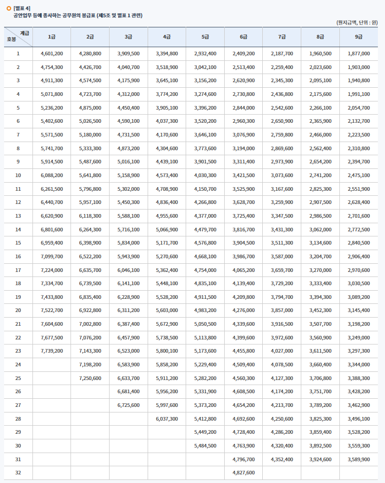 기본적으로 국가정보원 요원(행정 직원 등)은 공무원이기 때문에 행정안전부의 공무원 인사제도 안에서 연봉을 가늠할 수 있습니다. 국정원은 일반직이 아닌 공안업무를 담당하는 공무원 연봉표를 보면 됩니다. 여기에 정액급식비, 직급보조비, 가족수당 등이 일반 공무원처럼 추가되고, 특히 특수근무수당을 비롯한 수당이 더 붙게 됩니다. 즉, 국정원은 특수근무수당, 중요직무수당 등이 연봉을 가르게 될 것으로 보입니다.