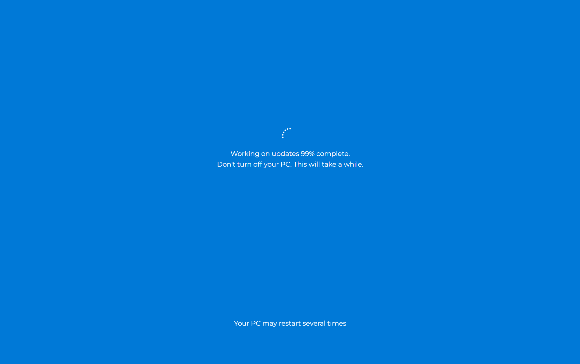 윈도우 업데이트 화면이 켜져 있으면 업무를 진행할 수 없습니다. 블루스크린이라고 하죠. 업데이트가 진행되거나 운영체제(OS)가 꼭 필요한 어떤 작업을 해야 할 때 종종 볼 수 있는 화면입니다. 이런 화면이 켜져 있다면 누구도 "왜 일 안 하냐"라는 말을 할 수 없죠. 이런 화면을 인위적으로 만들어 낼 수 있습니다.