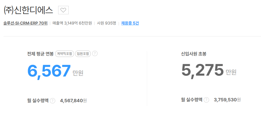 잡코리아에 따르면, 평균연봉은 6500만원대, 신입사원의 초봉은 5200만 원대입니다.