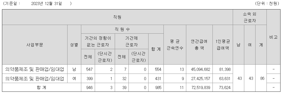 한독의 연봉은 남자직원 8100만 원, 여자직원은 6300만 원으로 평균 7300만 원 수준입니다. 평균 근속연수는 11년으로 남자직원 13년, 여자직원 9년입니다. 남녀 간 연봉 차이는 근속연수에 따른 것으로 보입니다.
