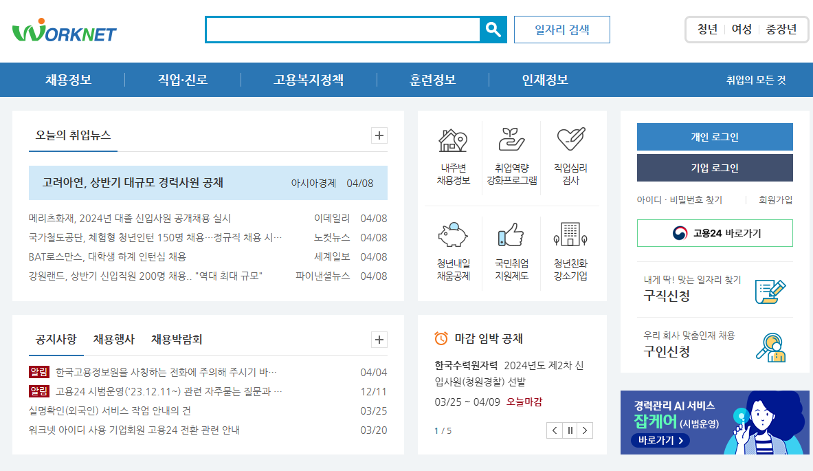 목차 직장을 구하기 위해서는 채용정보가 많이 모이는 곳을 알아야 합니다. 만약 별정직 공무원, 임기제 공무원이나 공사 등을 알아보려면 정부기관이 운영하는 플랫폼을 중심으로 보는 것이 좋습니다. 정부기관이 운영하는 사이트부터 민간 채용 사이트에는 어떤 것들이 있는지 알아보겠습니다. 아래 이미지들을 클릭하면 채용사이트로 바로 이동할 수 있습니다. 워크넷 워크넷은 고용노동부의 고용정보시스템입니다. 취업지원 관련 민원 서비스는 향후 '고용24'라는 곳에서 신청이 가능하도록 바뀔 예정입니다. 워크넷은 분야를 가리지 않고 채용 정보가 올라오는데, 일부 공고는 연봉정보를 포함해서 올라오기도 합니다. 이미지를 클릭하면 워크넷으로 바로 이동할 수 있습니다. 나라일터 나라일터는 인사혁신처에서 운영하는 플랫폼입니다. 주로 ..